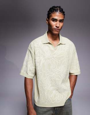 River Island floral embroidered polo in light green