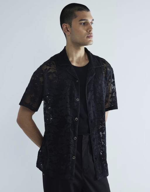 River Island floral lace short sleeve shirt in black