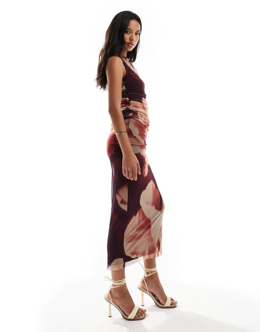River Island floral mesh midi skirt co-ord in dark red