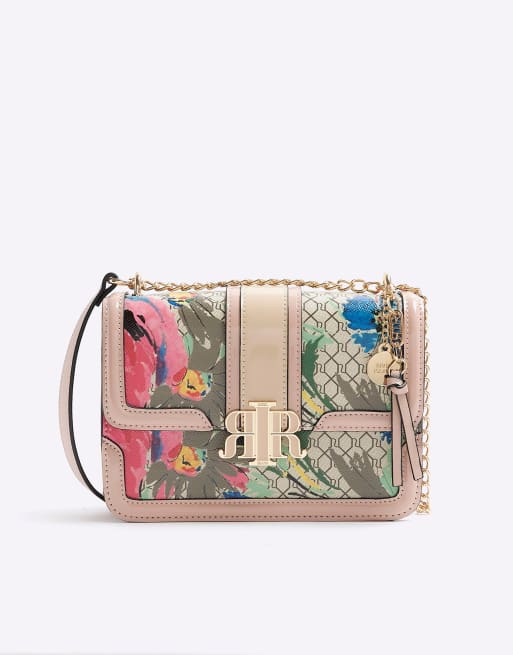 River Island Floral monogram satchel bag in beige