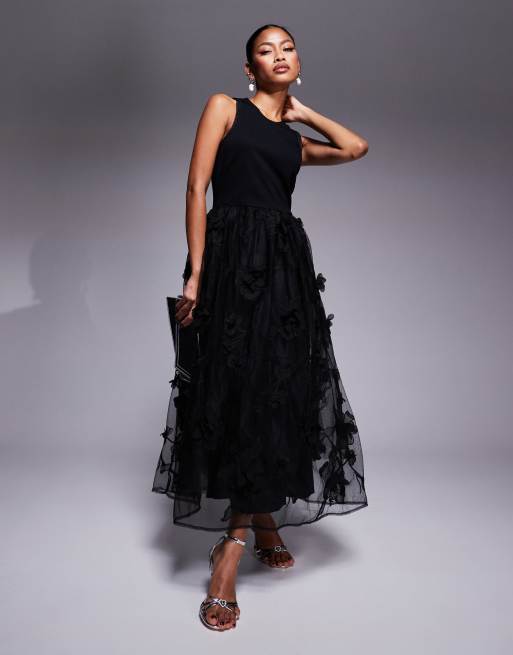 River Island floral organza prom midi dress in black