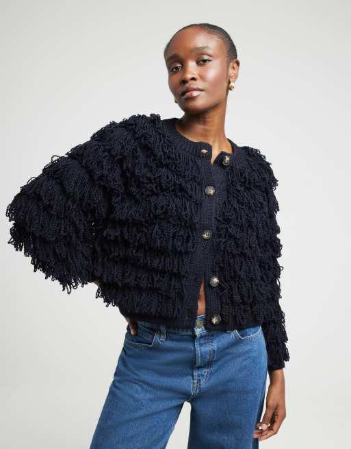 River Island Fringe knitted cardigan in navy