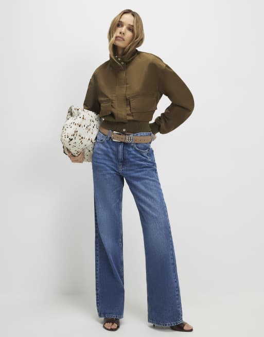 River Island Funnel neck bomber jacket in khaki