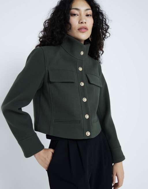 River Island Funnel neck jacket in khaki