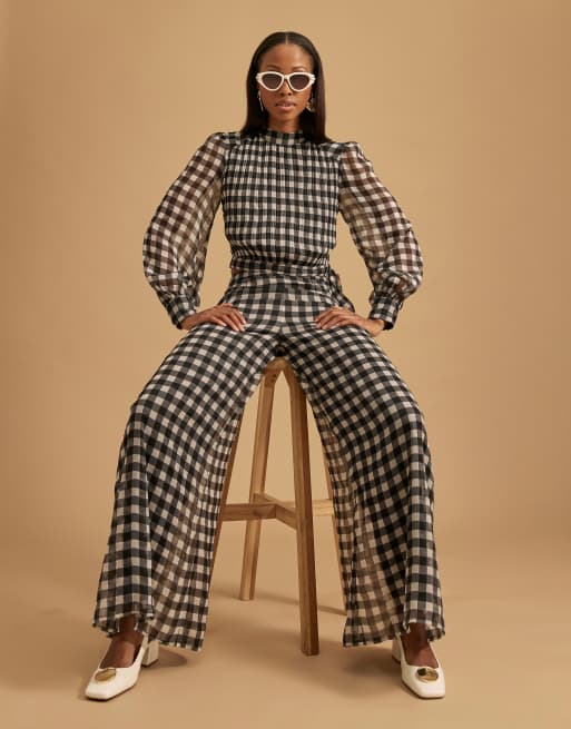 River Island Gingham wide leg trousers in black