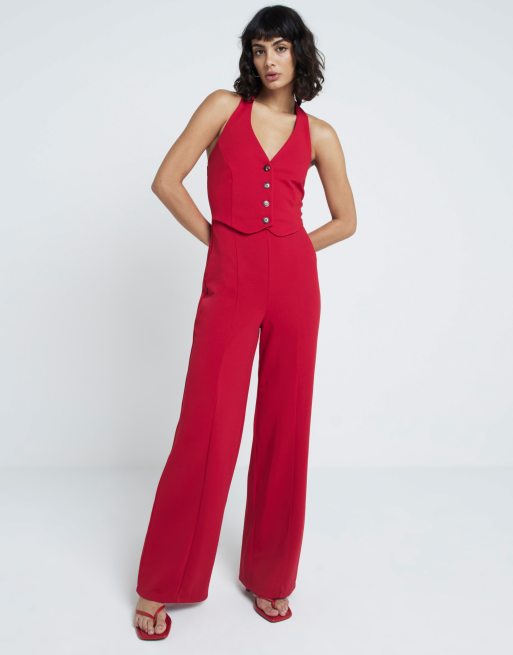 River Island Halter neck waistcoat jumpsuit in red
