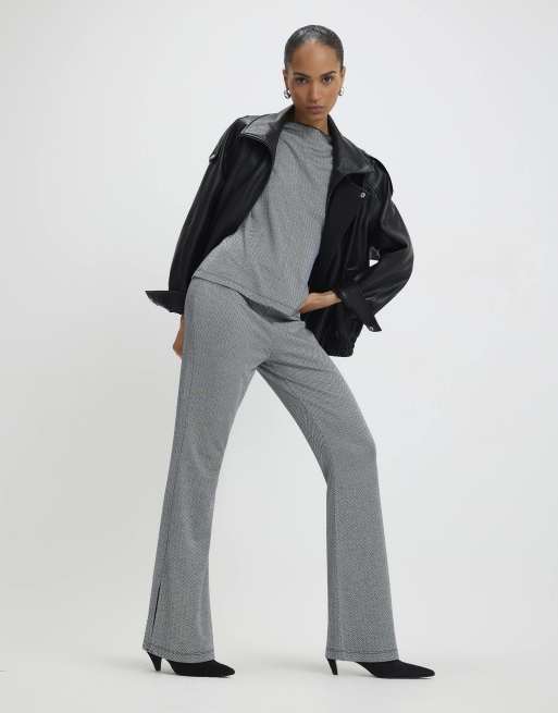 River Island Herringbone flared trousers in grey