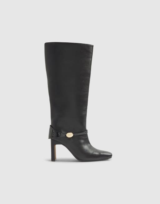 River Island High leg gold hardware heeled boots in black