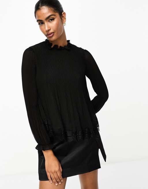 River Island High Neck Ruffle Top in Black