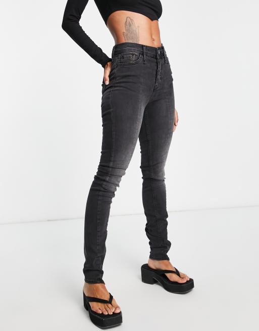 River Island high rise skinny jean with split zip hem in washed black