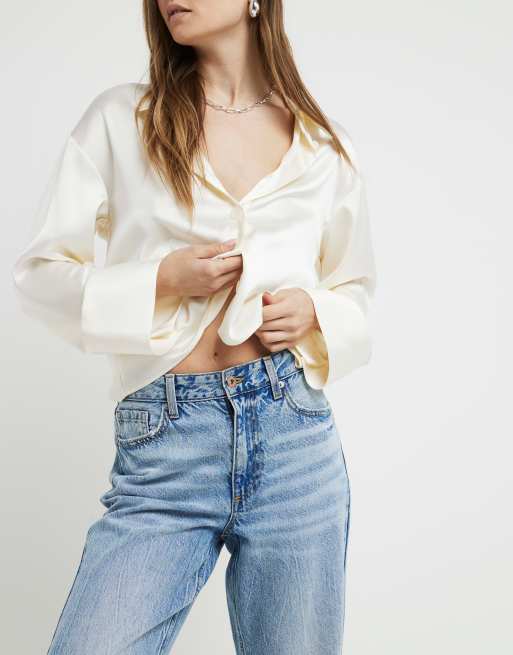River Island High waisted relaxed straight crop jeans in denim - light