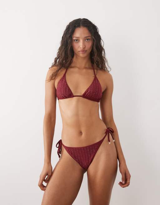 River Island hotfix triangle bikini top and tie side bikini bottoms in red