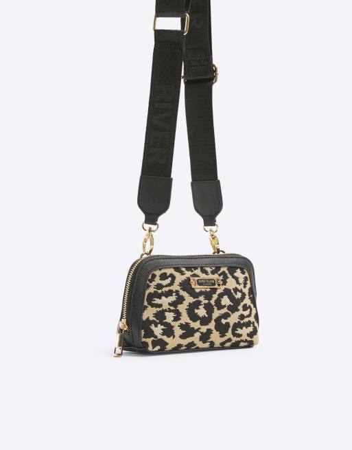 River Island Jacquard leopard print cross body bag in beige