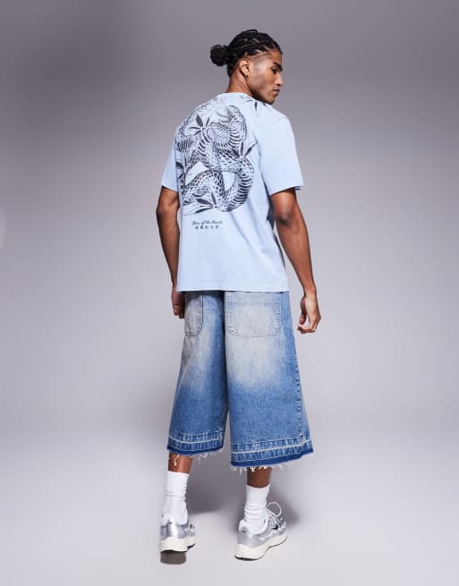 River Island Japanese back print t-shirt in washed light blue