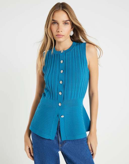 River Island Knit sleeveless ribbed peplum top in blue - medium