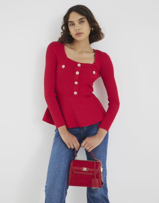River Island Knitted long sleeve peplum top in red