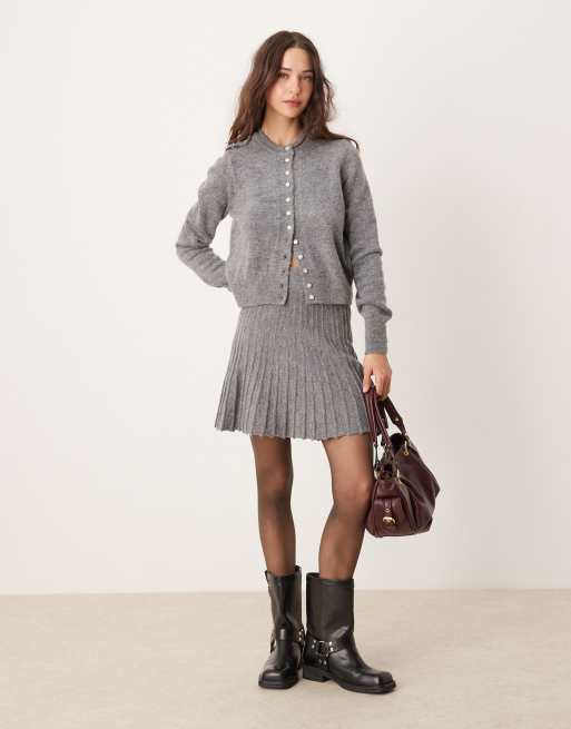 River Island knitted mini skirt co-ord in grey marl