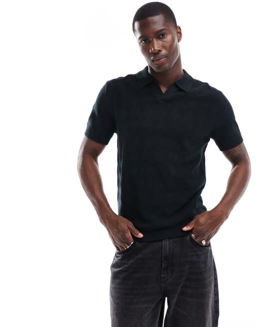 River Island knitted polo in black