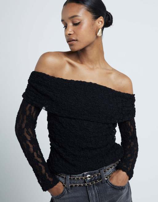 River Island Lace bardot top in black