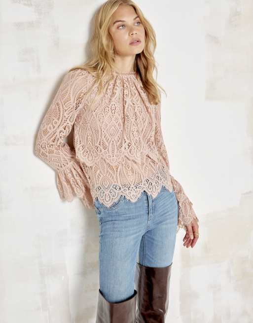 River Island Lace frill detail blouse in pink - light