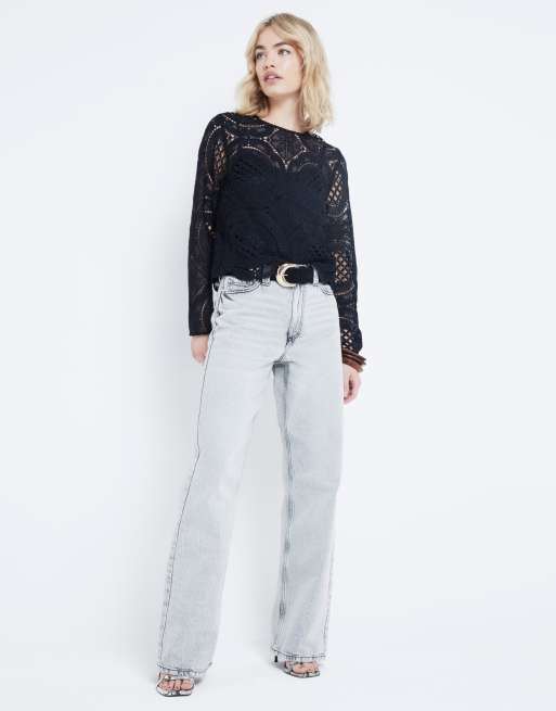 River Island Lace long sleeve top in black