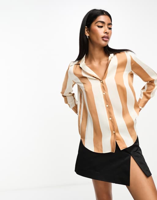 River Island Light Long sleeve Stripe Satin Shirt in Brown