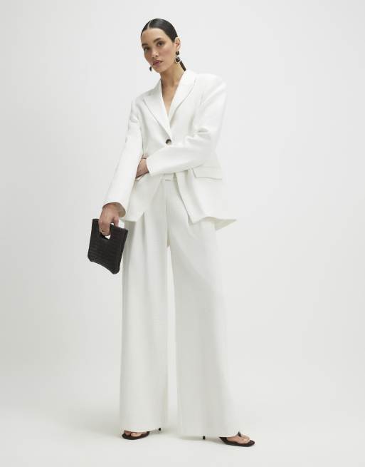 River Island Linen look wide leg trousers in white