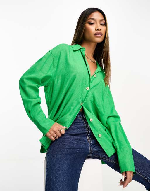 River Island linen oversized shirt in green