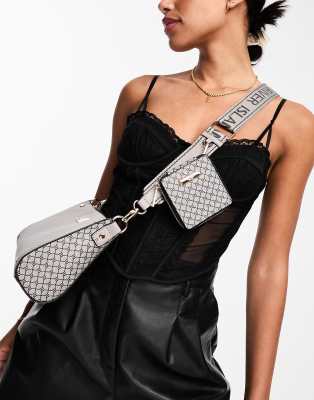 River Island logo strap cross body bag in grey