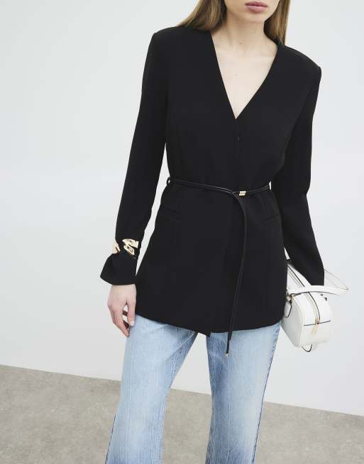 River Island Long sleeve belted blazer in black