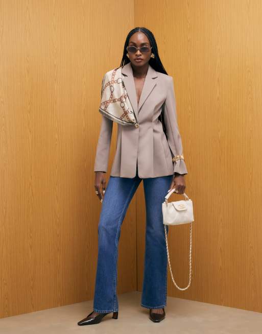River Island Long sleeve cinched waist blazer in beige - dark