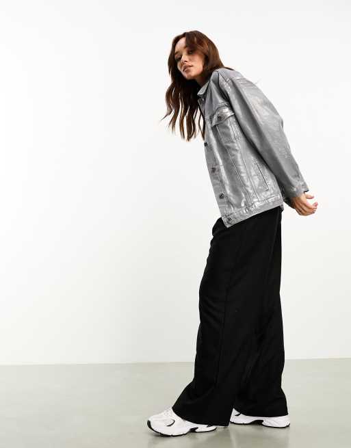 River Island long sleeve Coated Denim Trucker Jacket in Grey