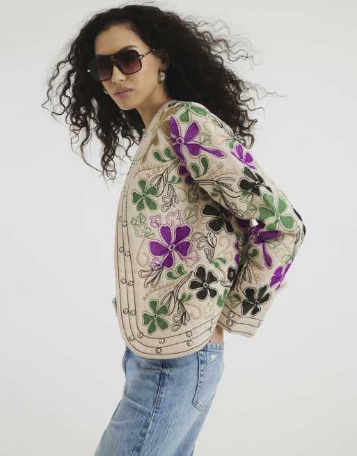 River Island Long sleeve floral studded jacket in cream