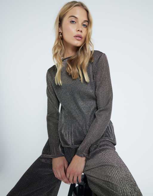 River Island Long sleeve flute plisse top in gold