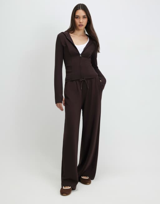 River Island Long sleeve premium zip through hoodie in brown - dark
