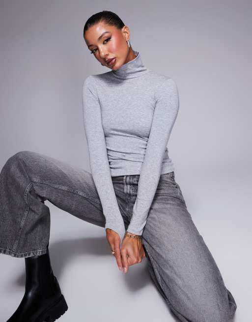 River Island long sleeve roll neck top in light grey