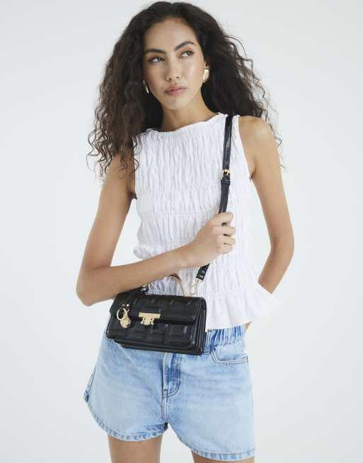 River Island Metal handle quilted tote in black