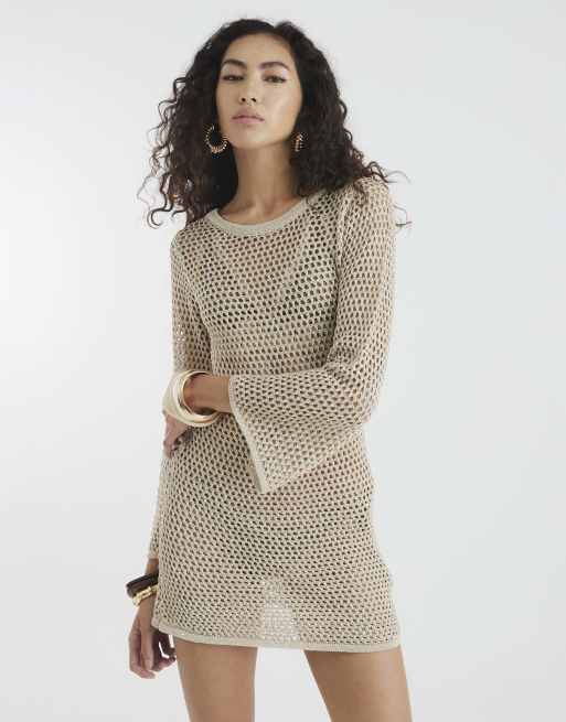 River Island Metallic knit tunic mini dress in gold