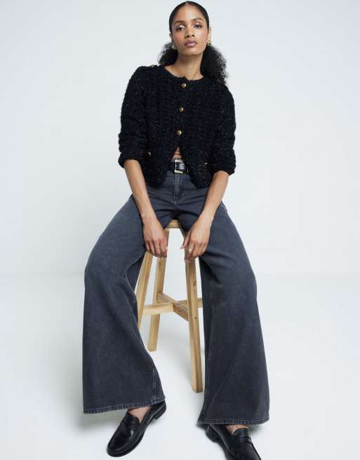 River Island Mid rise wide leg jeans in black