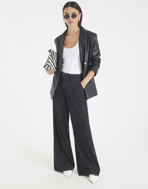 River Island Mid rise wide leg tie front jeans in black