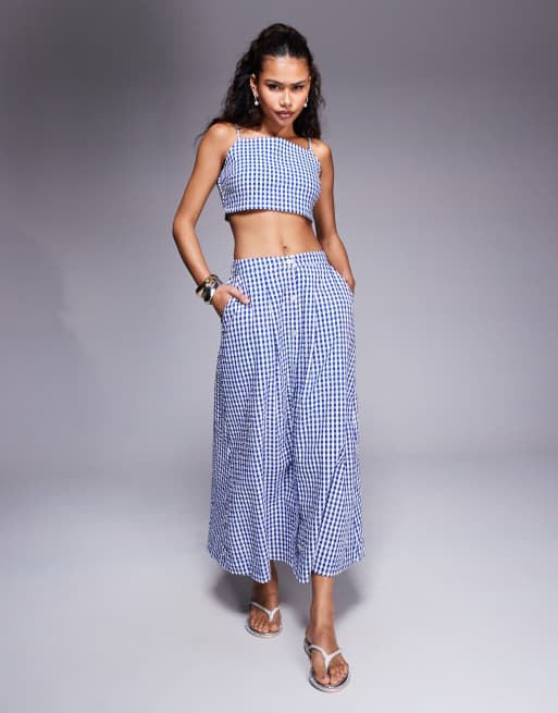 River Island midaxi gingham skirt co-ord in blue
