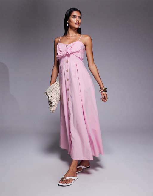 River island midi bow button up dress in pink