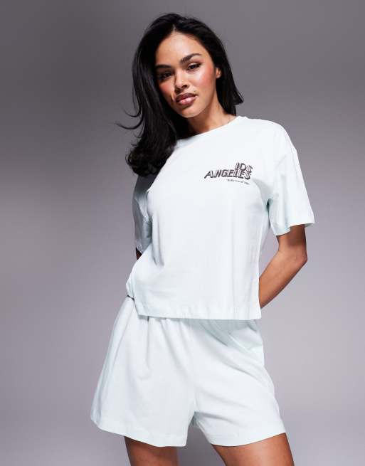 River Island mint jersey tee and short set
