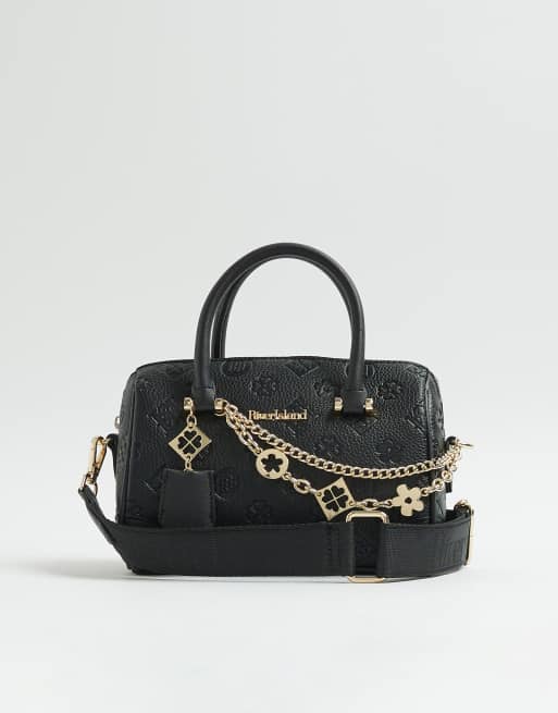 River Island Monogram chain detail bowler bag in black