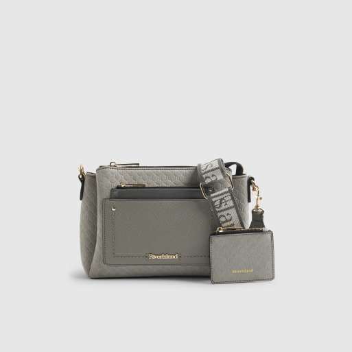 River Island Monogram pocket front cross body bag in grey