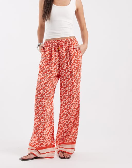 River Island monogrammed print trousers in orange