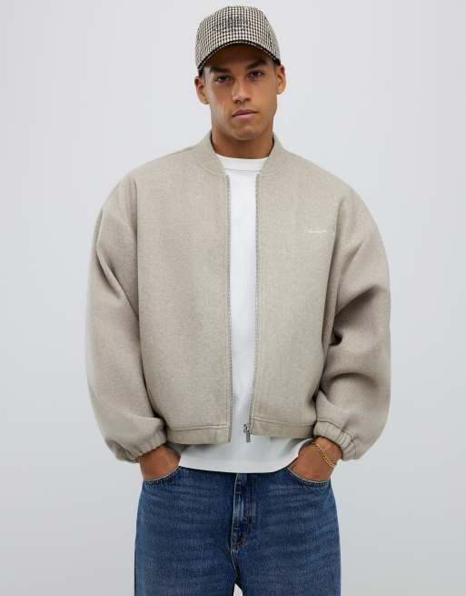 River Island Oversized fit sanctuaire bomber jacket in beige
