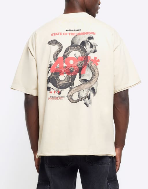 River Island Oversized fit snake graphic t-shirt in stone - light