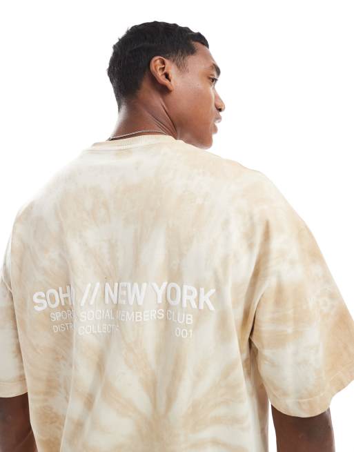 River Island oversized t-shirt with Soho logo back print in ecru tie dye