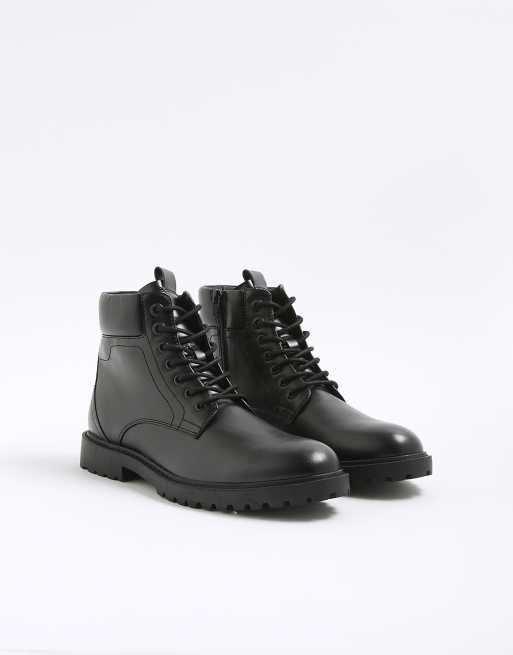River Island Padded lace up boots in black